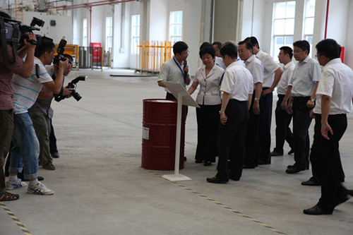 2012年8月21日無錫市市委書記、市長視察本公司正在德國毛瑟公司內調試的制桶設備現(xiàn)場