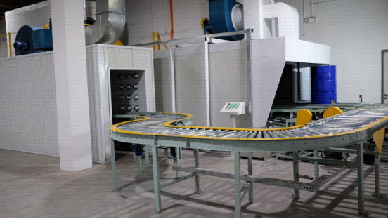 ▲圖12:自動(dòng)輸送系統(tǒng)運(yùn)輸鋼桶至成品庫(kù)房