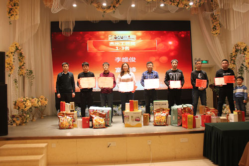 晚會伊始,公司總經理丁家偉先生作新年致辭,回顧過往公司所取得的成績,展望未來美好前景,因為2018年8月8日恰逢公司喜遷新廠十周年,對公司的老員工們表達了深切的感恩和祝福。同時也為大家樹立了2019年大家擼起袖子加油干的目標,讓員工們激情澎湃,滿懷憧憬。 北方制桶設備在2018年交出了一份滿意的答卷,離不開每一位員工的辛勤耕耘,整個年會對2018年優秀的員工進行了表獎,有先進工作者,優秀新人工匠,敬業標兵,優秀后勤,優秀庫管,優秀質檢,杰出帶頭人,積分排名第一、第二、第三名,優秀技術工程師及優秀工匠團隊,頒發了豐厚的獎品,獎金和獎狀,以茲鼓勵!