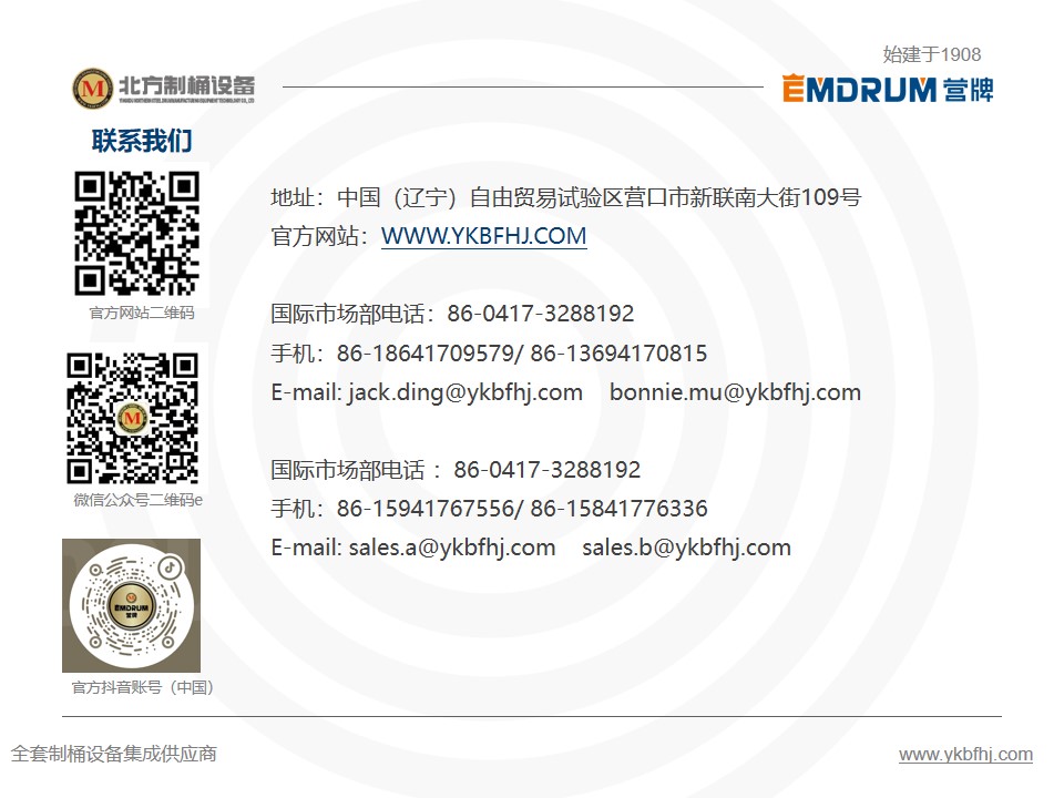 主辦單位:營口北方制桶設備科技有限公司 市場部電話:0417-3288192 備件銷售熱線:0417-3288192 售后服務熱線:0417-3288153